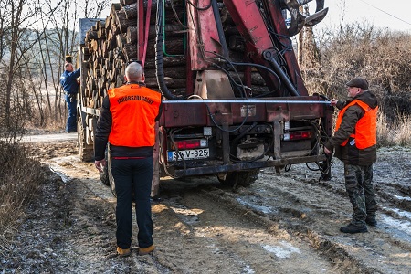 Miskolc, 2022. január 31. - Járőrszolgálattal, gyakori ellenőrzésekkel, összehangolt akciókban való részvétellel igyekeznek megóvni az állami tulajdonú erdőket az Északerdő Zrt. munkatársai.