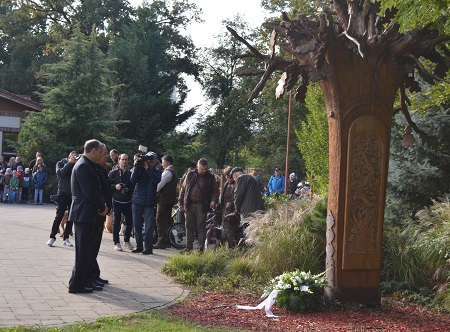 Az ünnepi beszéd után Debrecen városa, a Debreceni Egyetem, a Debreceni Értéktár Bizottság, a Hortobágyi Nemzeti Park Igazgatóság, a Tiszántúli Vízügyi Igazgatóság, a Hajdú-Bihar Vármegyei Kormányhivatal Agrárügyi Főosztály Erdőfelügyeleti Osztálya, a Nagyerdőért Egyesület, az Országos Erdészeti Egyesület és a Nyírerdő Zrt. képviselői megkoszorúzták az erdészet udvarán álló „A természet újjászületése” elnevezésű emlékoszlopot.
