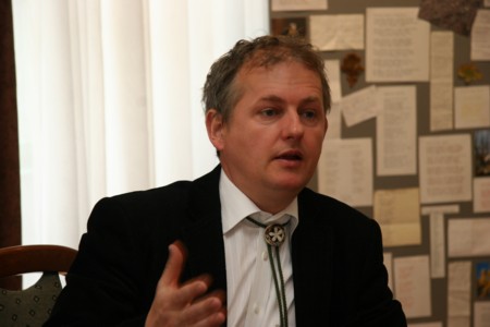 A konferenciateremben Jáger László intézetigazgató (EVGI) fejtette ki álláspontját a tervezett erdészeti kommunikációs szemináriummal kapcsolatban.
