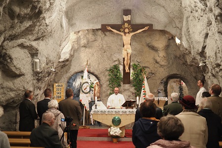 János Atya elbocsátó áldása után az Erdészhimnusz eléneklésével, majd egy kis beszélgetéssel és közös fotó elkészítésével zárult idei sziklatemplomi eucharisztikus ünneplésünk.